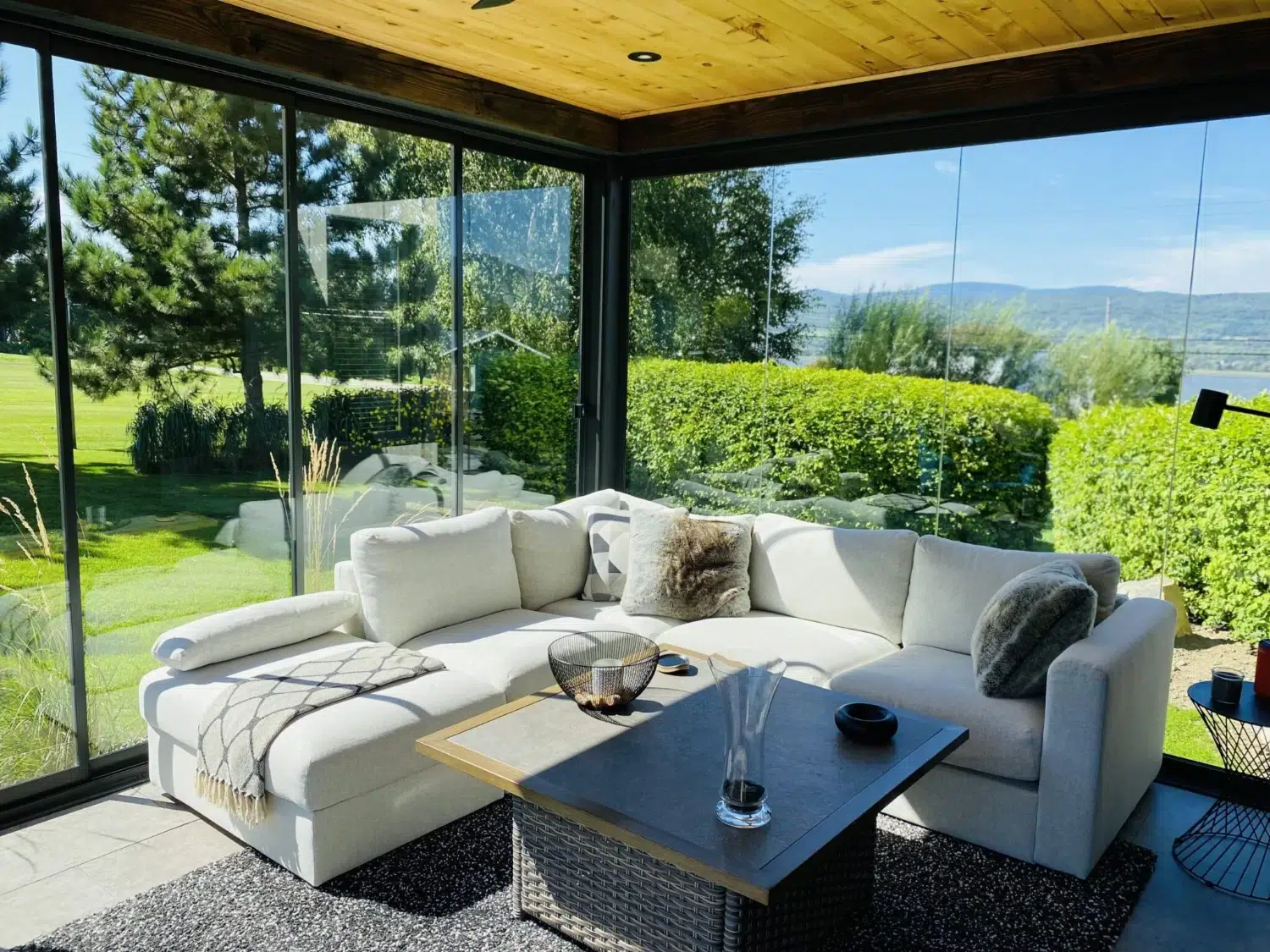 This innovative system supports both single and double glazing options. Horizon Plus effectively addresses insulation challenges while offering a sleek, unobstructed panoramic view. Unlike conventional systems, Its uniquely engineered panels, spanning up to 1.5 m wide, remove the need for fixed corner posts. The panels slide seamlessly on advanced trolley units with a reliable locking system, ensuring easy and secure operation.