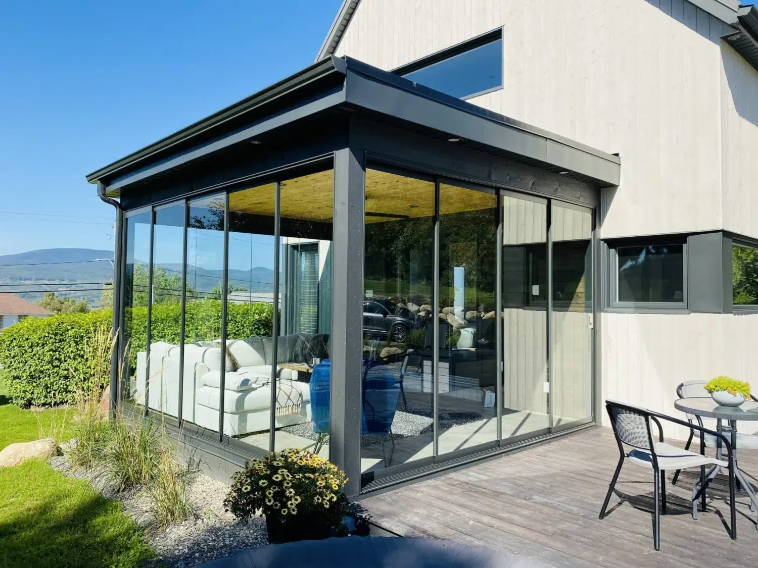 The innovative side panel profile is ideal for L-shaped and U-shaped designs, providing a sleek panoramic view without the need for corner posts.